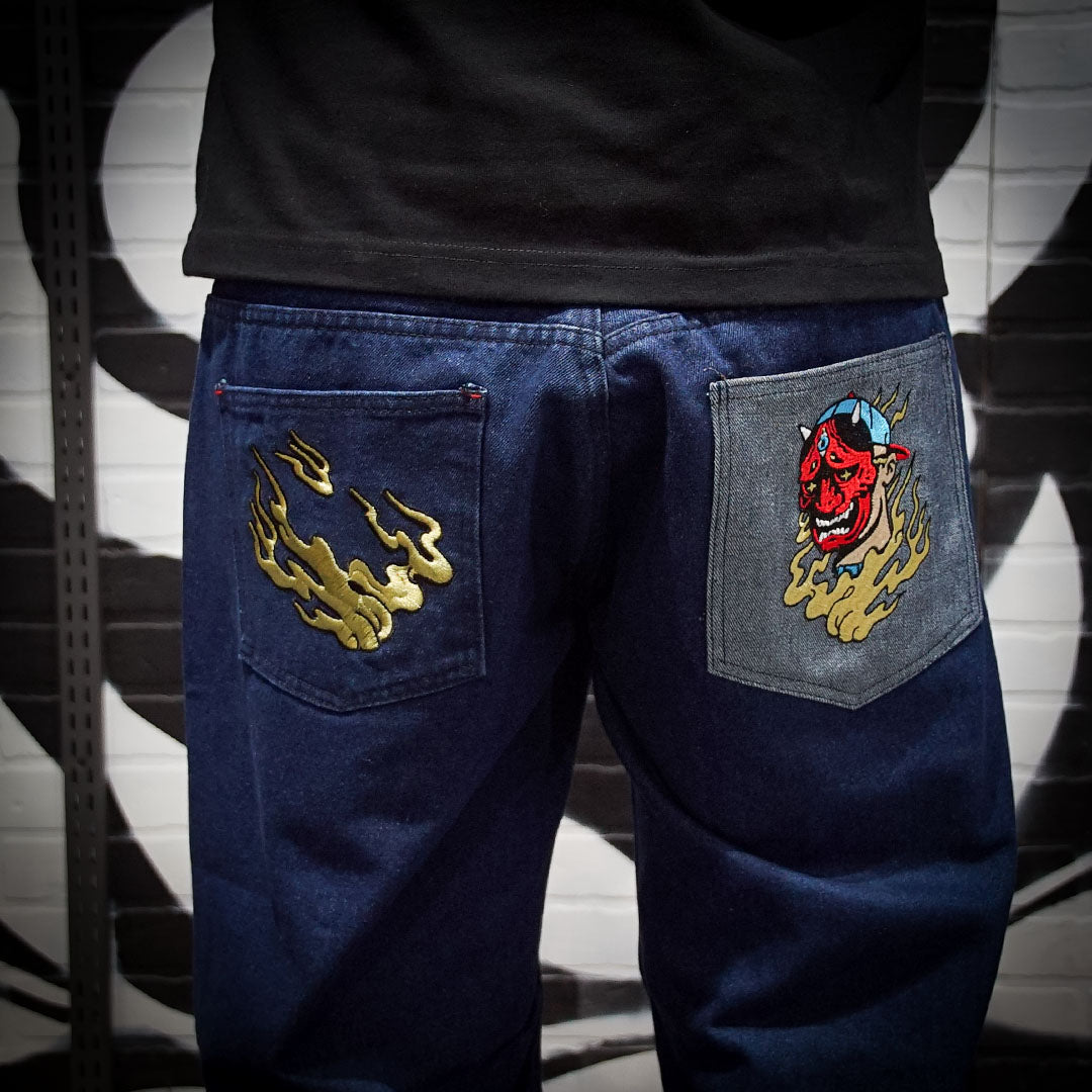 Pantalón Antifashion Hannya Indigo Bordados